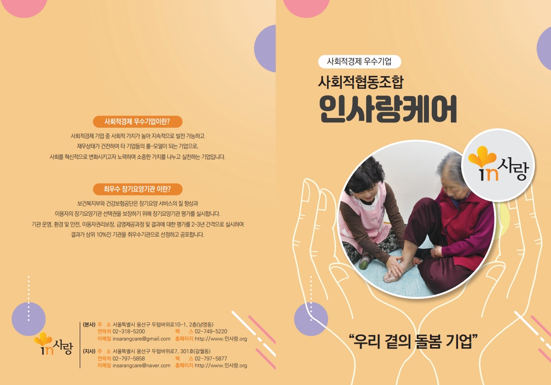 사람 사랑으로 좋은돌봄 문화를 선도하는 인사랑케어
